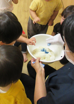 〚たんぽぽ西船橋駅前保育園〛小麦粉粘土の感触を楽しみました!