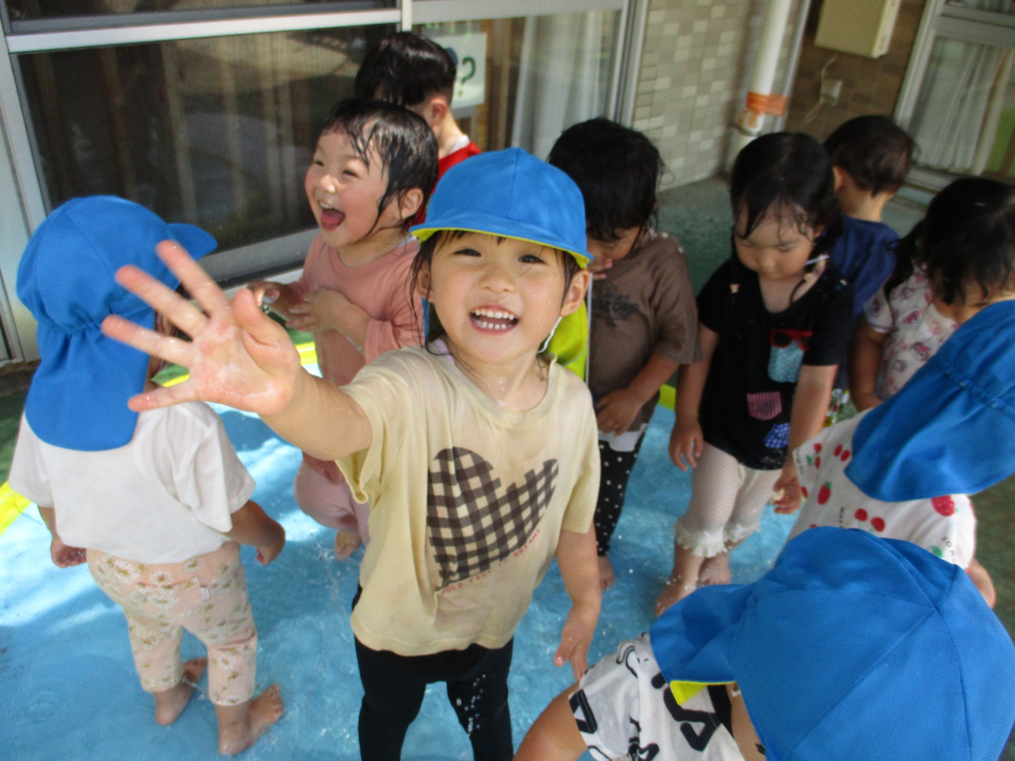 こどもの家・志木中宗岡 水遊びを楽しんだあとは… 1歳児あひる組