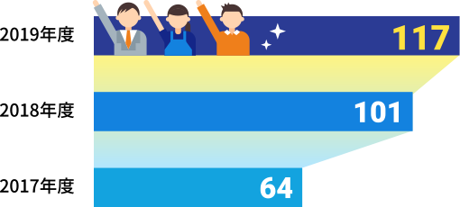 人間関係が良好な職場だからこそ、仲間を呼びたくなる。そんな、紹介の連鎖がALSOK介護株式会社にはあります。過去3年間でなんと282名の方にとも呼び紹介制度を利用してご入社いただいております。