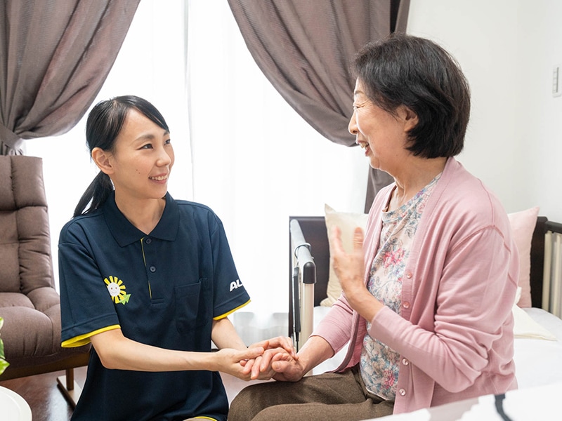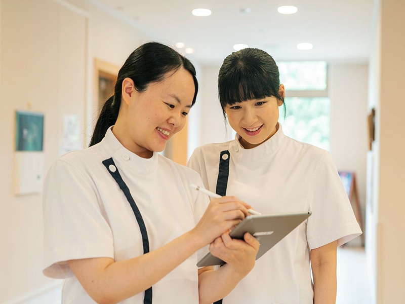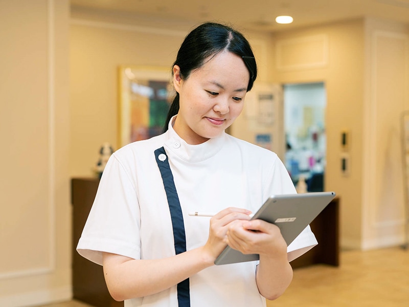 バイタルチェックだけでなく、貼付薬や塗り薬の塗布など、専門的な看護業務を実施します。