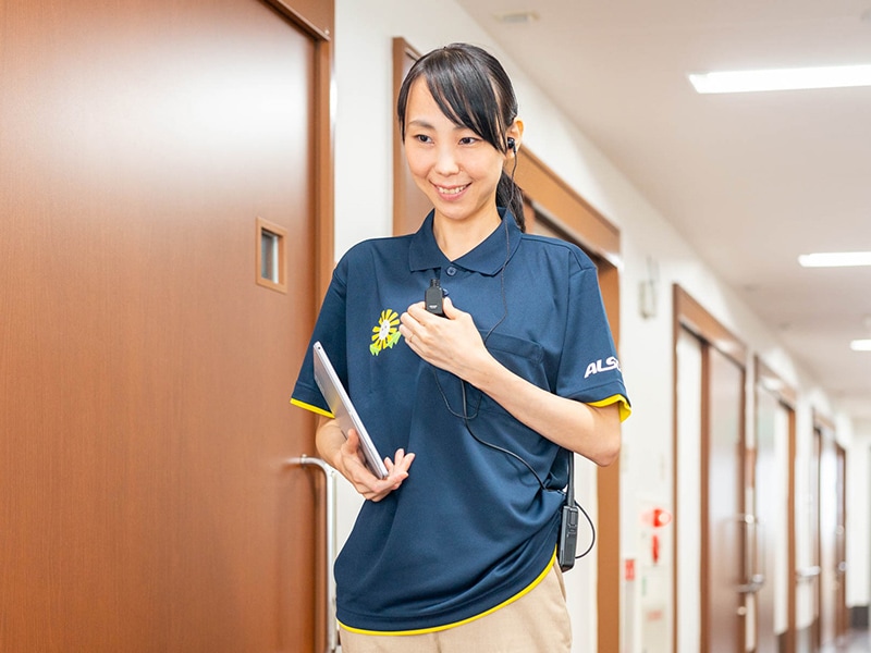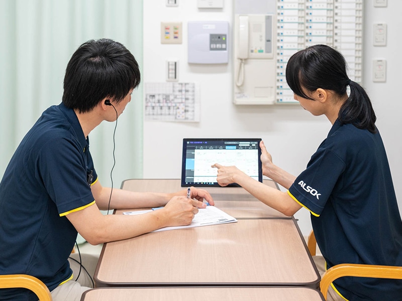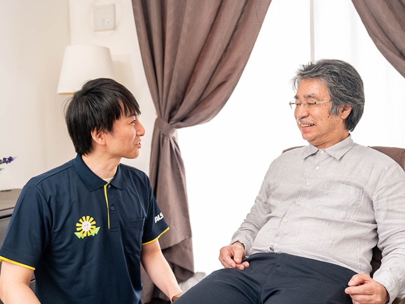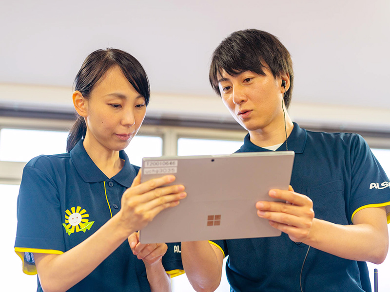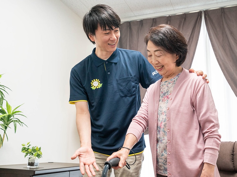 当社オリジナルのALSOK体操をご利用者様と一緒に行っていただきます。認知症予防に効果を発揮します。
