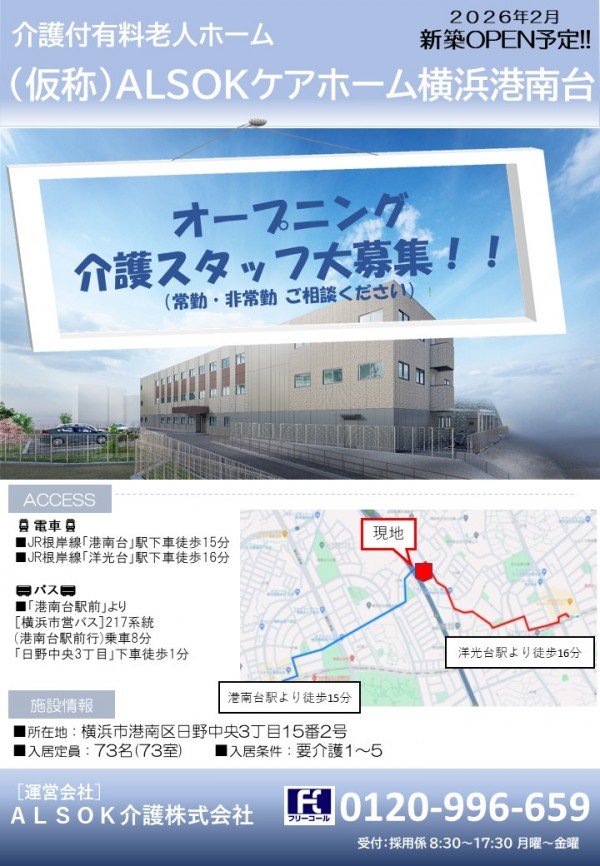 ★2026年2月新築OPEN予定★介護付有料老人ホーム『(仮称)ALSOKケアホーム横浜港南台』★第5弾!