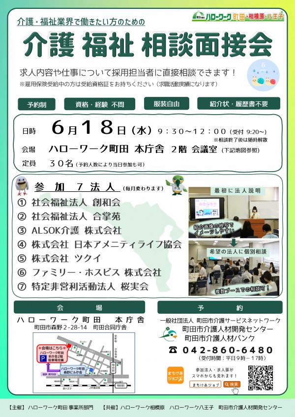 ハローワーク町田で開催する【介護 福祉 相談面接会】にALSOK介護が参加します。