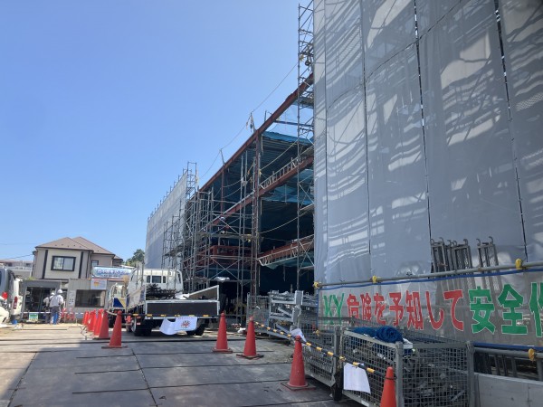 前回は土台工事のみで何もありませんでしたが、ずいぶんと骨組みが組まれています!