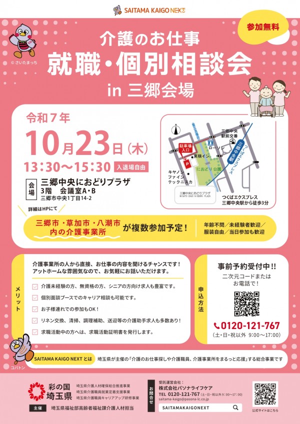 三郷中央におどりプラザ3階で開催する【介護のお仕事 就職・個別相談会】にALSOK介護が参加します。