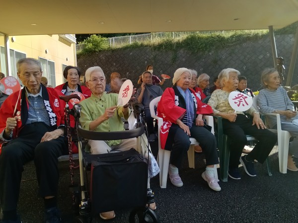 すこや家・真鶴の敷地内までしっかり練り歩き!利用者様も職員もこの日をとても楽しみにしています。