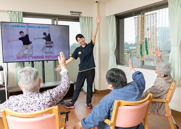 NoA体操(※ALSOK介護独自の運動コンテンツ)などの体操や、企画したレクリエーション等を行います。