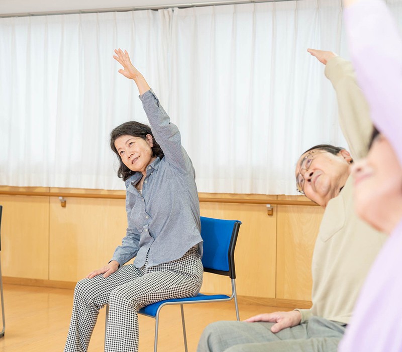 どなたでも無理なく行える「チェアヨガ」(椅子に座ったままできるヨガ)をプログラム化したシニア向けヨガです。