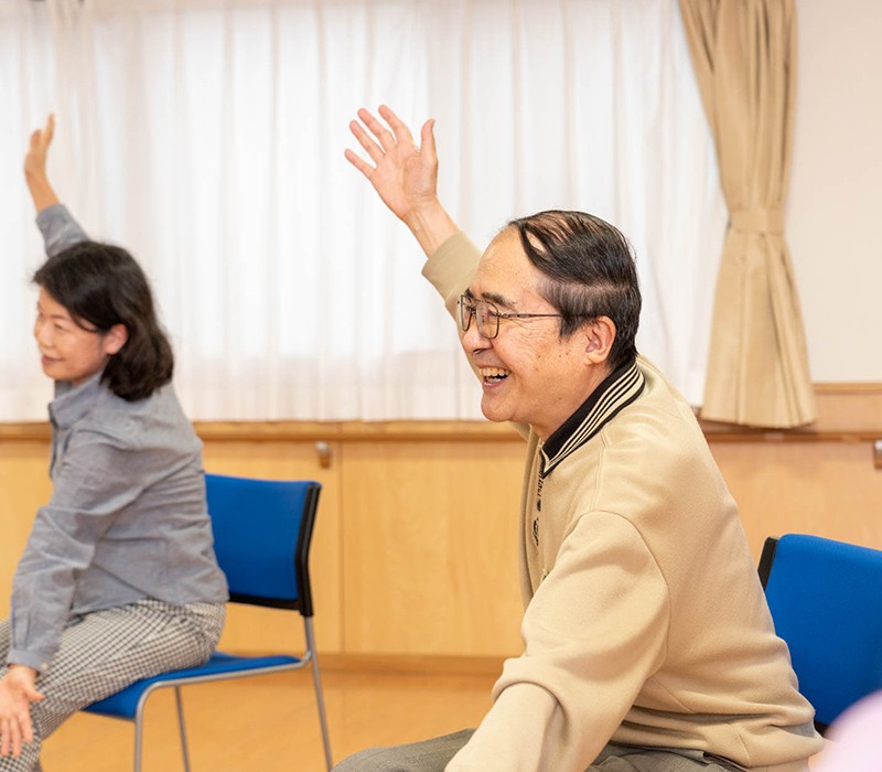 リズムに合わせて運動をすると、自分のからだの動きが合っているかを即時に判断するため、脳が複雑な働きをします。複数の脳機能を使うことで認知症予防としても効果が期待できます。