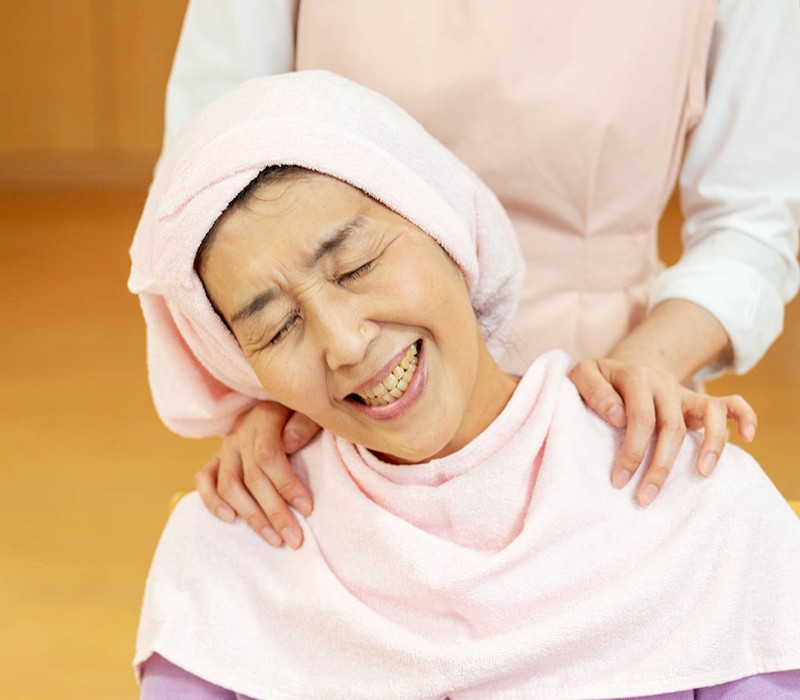 顔のリンパの流れを促し、頭・首・肩周りの筋肉をほぐすことにより、血行が良くなり表情がいきいきとしてきますので、顔面に麻痺のある方にもおすすめです。