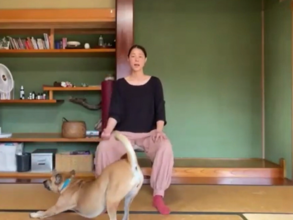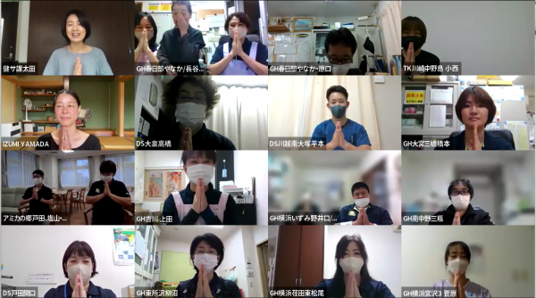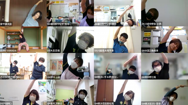 皆で実施回数や感想を共有した後、画面越しにヨガのレッスンを受けます。