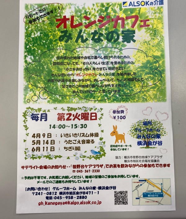 本日は、グループホームみんなの家・横浜金が谷でのオレンジカフェの模様をご紹介します!