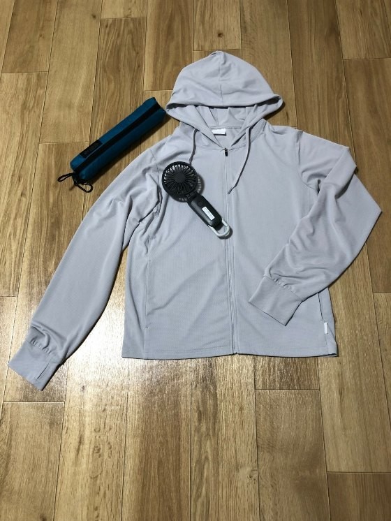 1つ目は傘です。直射日光を遮ってくれるのはもちろん、この時期意外と多い天気の急変にも対応できる晴雨兼用の傘はとても便利です。